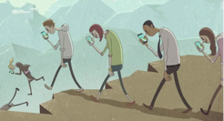 dirige vers un ravin et se jette dans le vide sans qu’aucun mouton ne se pose de question ...