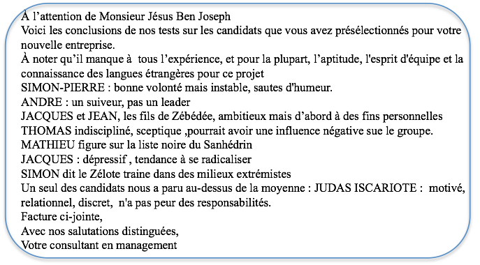 l’Esprit saint qui sonde les coeurs n’a évidemment pas besoin de CV...
